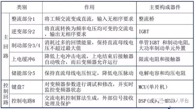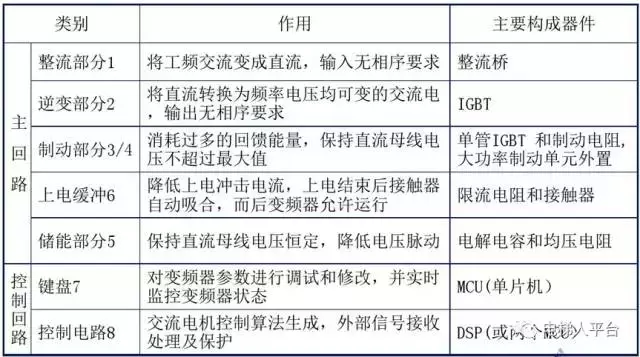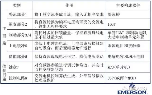 把电压和频率固定不变的交流电变换为电压或频率可变的交流电的装置称作“变频器”。变频器主要是由主电路、控制电路组成。