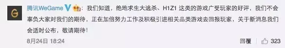 在鹅厂的WeGame官方微博中跪求鹅厂救救H1Z1