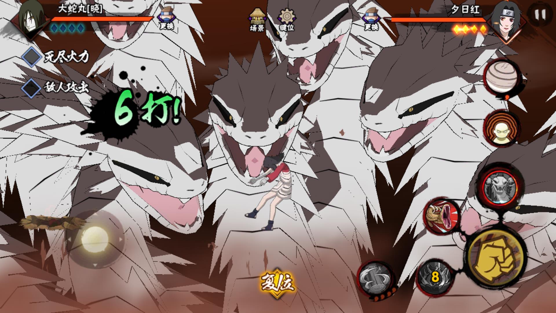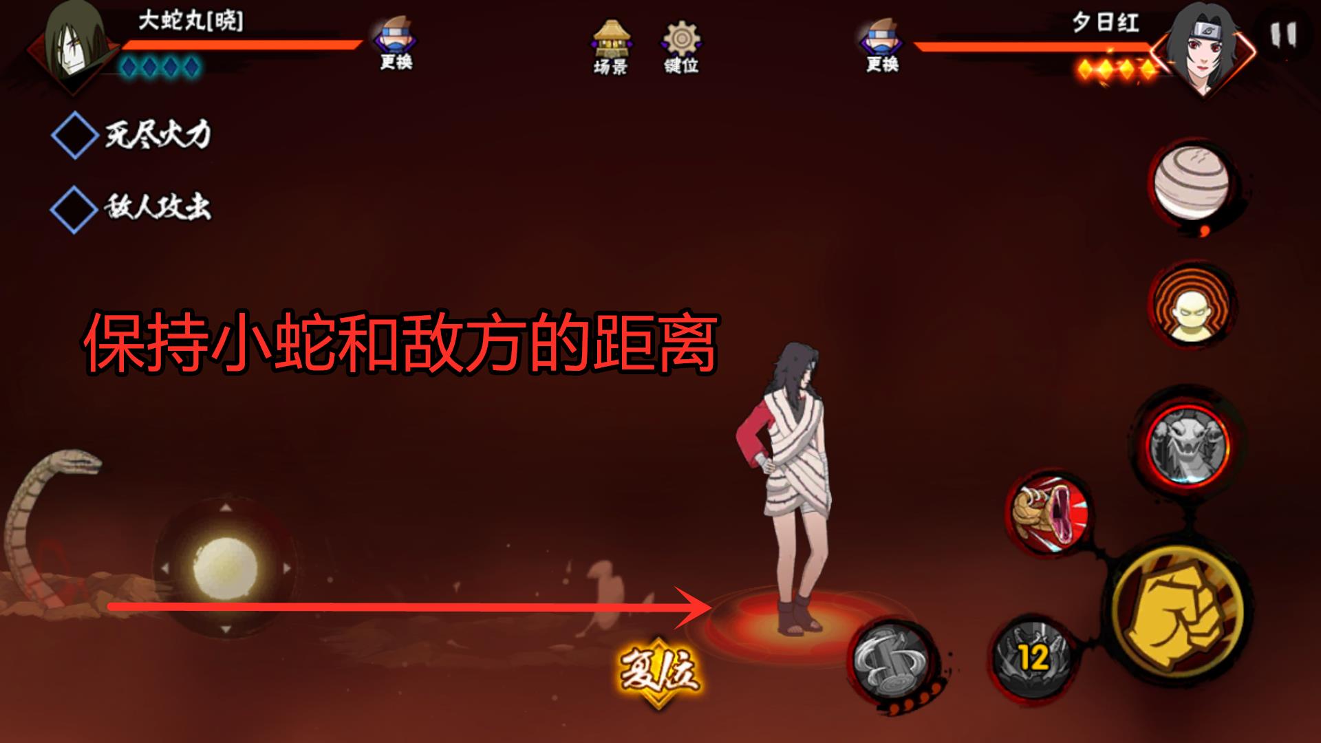 处于第三形态下的大蛇丸,一技能会有追踪抓取的功能,一旦锁定目标,就会放出毒蛇抓取对手!这里还需要注意,第三形态的大蛇丸抓取技能是可以长短按的!短按直接追踪,长按在原地留下一个小蛇保护自己,一旦对手接近就会迅速锁定目标!与此同时,我们的大蛇丸二技能长按是位移,短按则是远程抓取,类似于木叶三忍大蛇丸的机制!而且,晓大蛇丸的大招的后半段打击霸体目标有奇效哦!