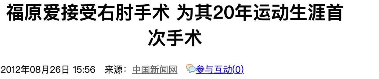 伦敦奥运会结束之后,福原爱右胳膊的伤病已经不能再拖了,于是她20年运动生涯第一次停下脚步,在同年8月底做了右肘滑膜摘除手术。