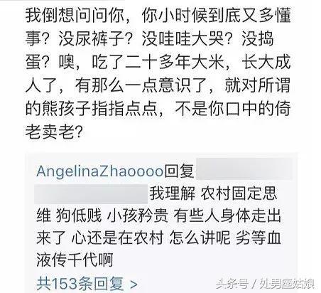 比如这波实名嫌弃农村人血统不够高贵,还表示农村人“劣等血液传千代”。
