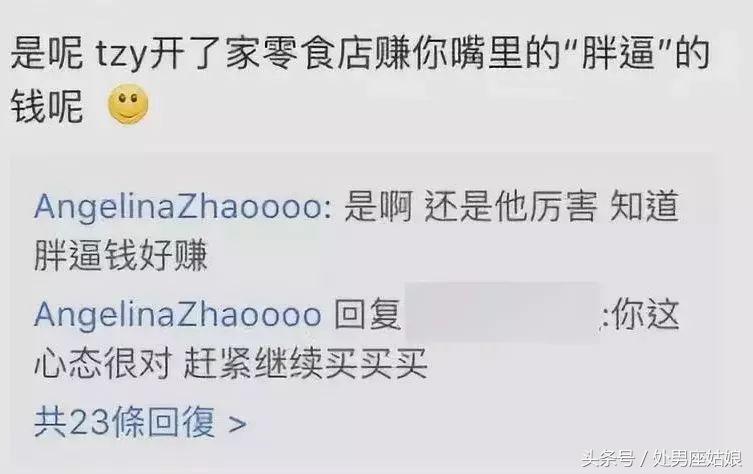 但粉丝对赵子易就十分疑惑了:“你这么歧视胖逼,你男友开的零食店赚的正是胖子的钱呢”