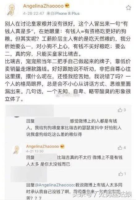 还diss给自己狗狗喂平价狗粮的小姐姐“是你太穷而已”。