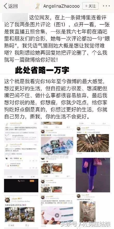 除了怼人,挂人就更是赵姐的家常便饭了。因为别人对自己的评价不够友好,她就翻遍了这位网友过去几年全部微博,然后给人家的人生写了段小作文。