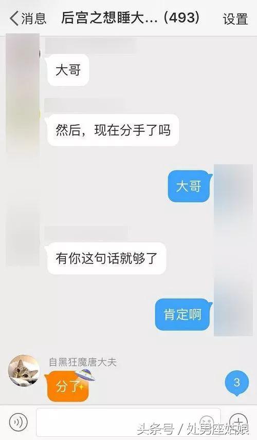 并且为了挽回一下零食店的生意,唐大夫和赵子易双方都对粉丝表示:已经分手了。唐大夫在粉丝群亲口跟粉丝们说了“分了”。