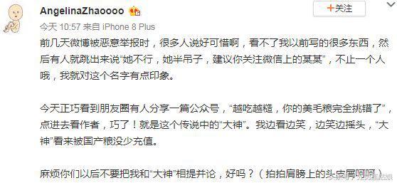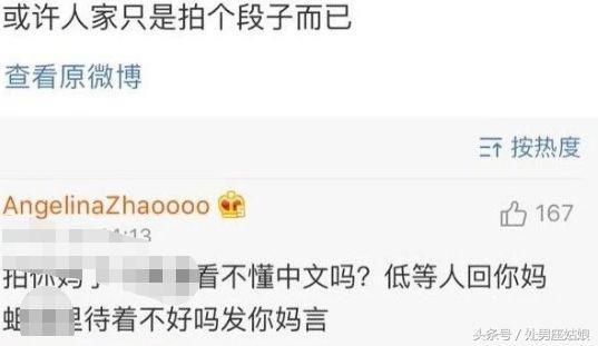 虽然微博被封了,评论别人微博的功能还是在的,赵姐在微博凉了之后也不忘在别人的微博下边评论怼人,可以说是非常社会了。