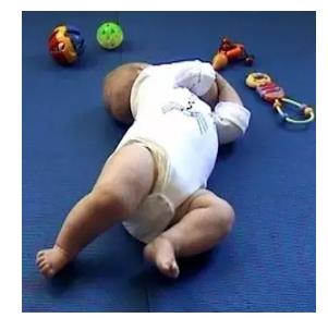 上面这张图片中的宝宝,在身体放松的情况下依然持续性的呈现头部向后背的状态,经引导也不易恢复,这就是肌张力高的典型表现。