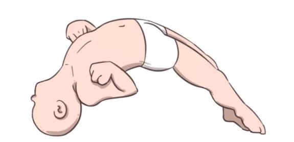 强直性颈部反射,也被称为“击剑姿势”,当宝宝头部专向某一侧时,同侧手臂会伸直,另一侧手臂弯曲。这种反射在宝宝5~7个月左右会消失。