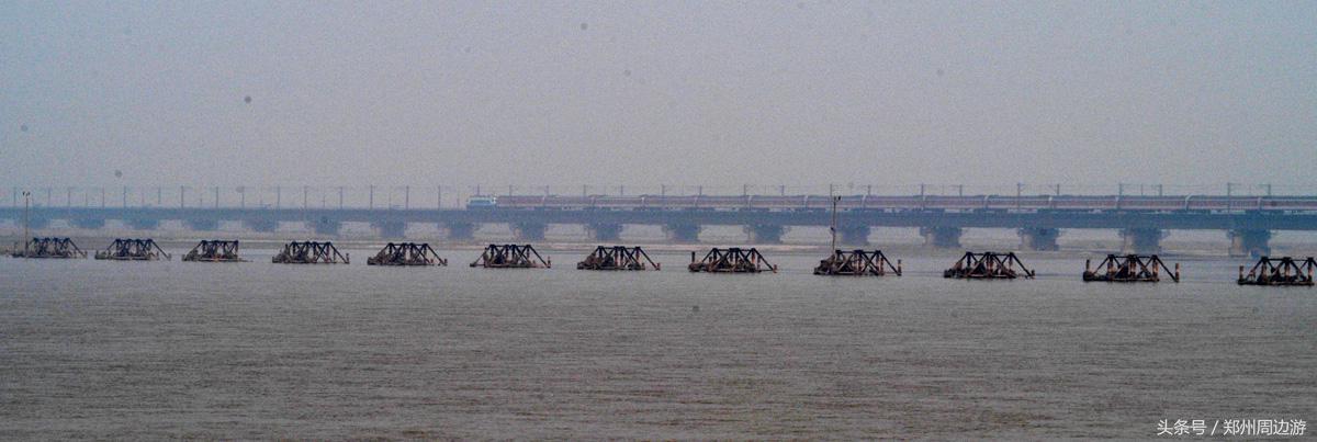 郑州黄河风景游览区内的京广铁路郑州黄河铁路大桥遗迹,黄河河面上的铁路桥已经只剩桥墩,黄河风景游览区内残留的一段尚保存有桥面和铁轨,已成为该游览区内的一个景点。