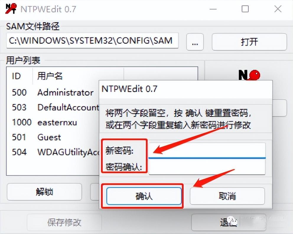 在这里我出现此弹窗后,就没输入新密码,直接点确认,这样会让我们的登录账户不需要密码登录,可直接登录。
