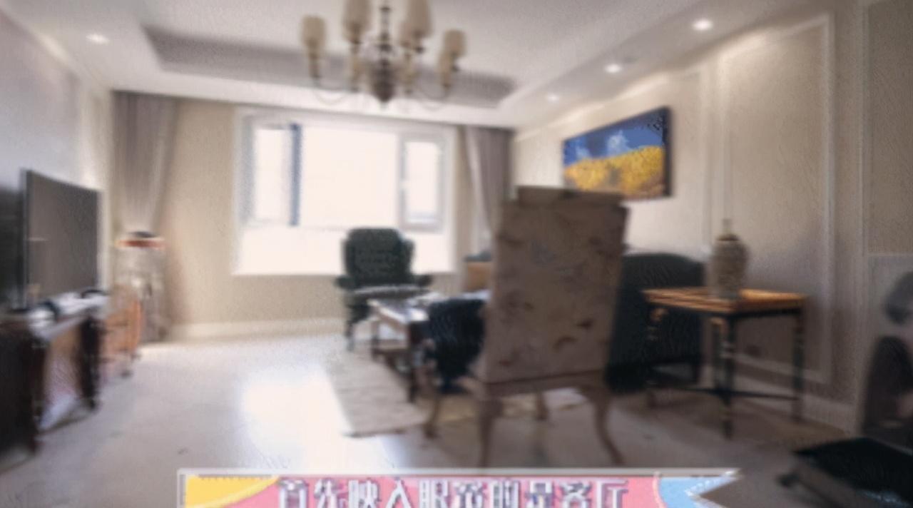 这里就是张云雷家里的客厅了,客厅不是很大,摆放的很紧凑。能看到天花板用的是欧式石膏线的设计,上面还有个考究的吊灯用来照明;靠在墙边放了台电视机,下面则是深棕色的电视柜;面对着电视机的是放着一张墙画的墙壁,墙画比较大,占了大部分的墙壁面积。