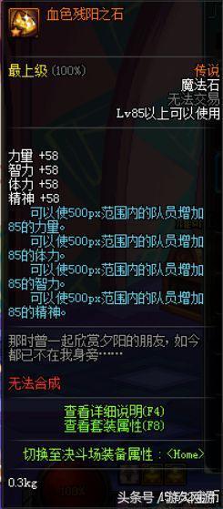 下装:物理攻击力+55,魔法攻击力+55,独立攻击力+83(同上也有加暴击效果)