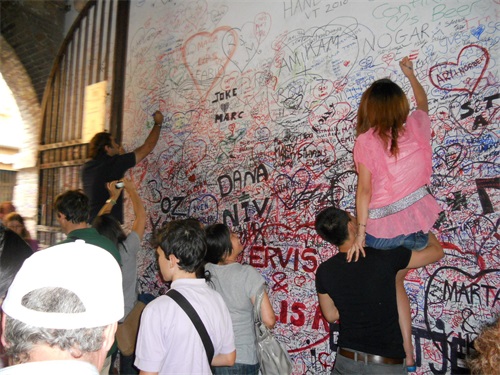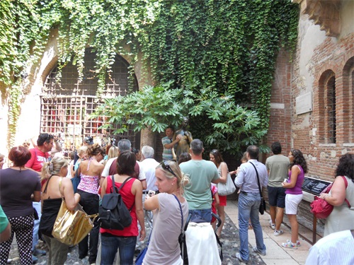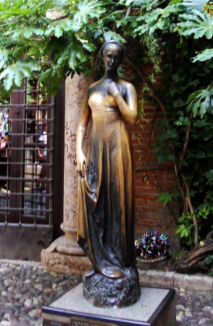 朱丽叶的故居位于意大利维罗纳市中心步行街区内,从门洞进去就可以看到朱丽叶的铜人像,每次去都会看到铜人周围很多人在排队等着跟铜人合影,当然还有一个标准的动作,就是摸铜人的右胸,据说可以给人带来好运。每天上千人排队摸铜人的右胸,导至铜人的右胸被摸的发亮,跟抛光过一样,许多年以来铜人的右胸被摸破了洞,到2010年铜人的右胸就已经被补过三次了。现在德国还是在封城期。我以下图片拍摄于2010年。朱丽叶故居内部不允许开闪光灯,请将就着欣赏,还有朱丽叶的卧室也拍了。