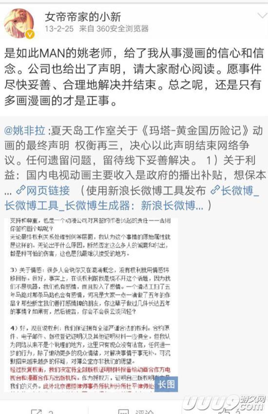 小新的好友,风息神泪(代表作《星轨是天空的道路》)在同日也发微博为老友抱不平!话语中透露小新这些年来在夏天岛受到很多苛刻,很多委屈,为了供妹妹上学全都忍耐了下来。在风息神泪的叙事中,难以想象一个连载漫画家的生活能如此艰苦!如果不是为了梦想,谁又能坚持到现在?国漫这些年难以发展,也是情有可原……