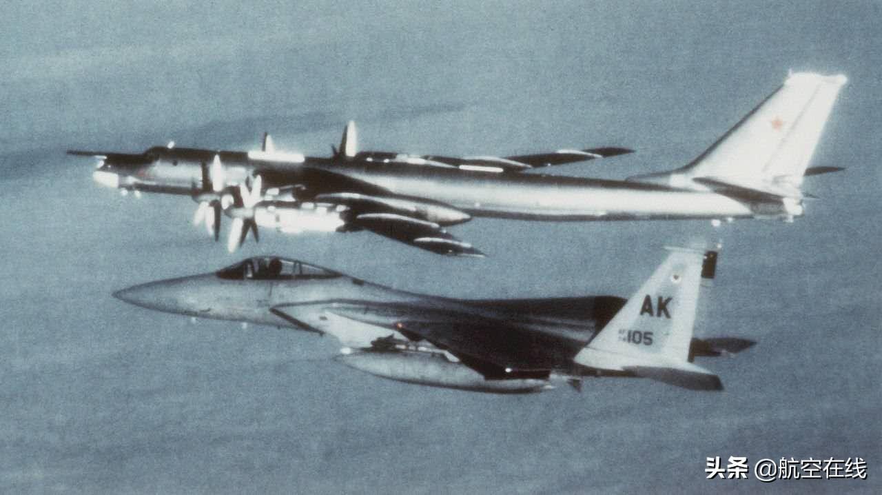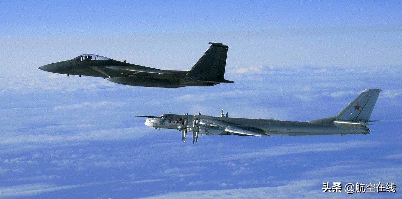 Tu-95MS与强制伴飞的美国空军F-15鹰式战斗机
