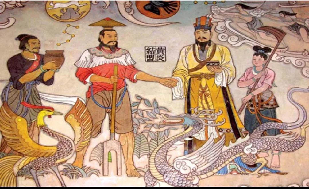经过多年兼并征战后,天下呈现黄帝、炎帝和蚩尤三足鼎立的局面。急于一统天下的炎帝不断征伐各个部落,侵占了大量的土地,这些部落的民众就不得不投靠了皇帝。失去民心的炎帝最终战败,率众投降。仁厚贤德的皇帝并没有将炎帝杀死,而是与之结成部落联盟,世代联姻,大大增强了自己的实力。