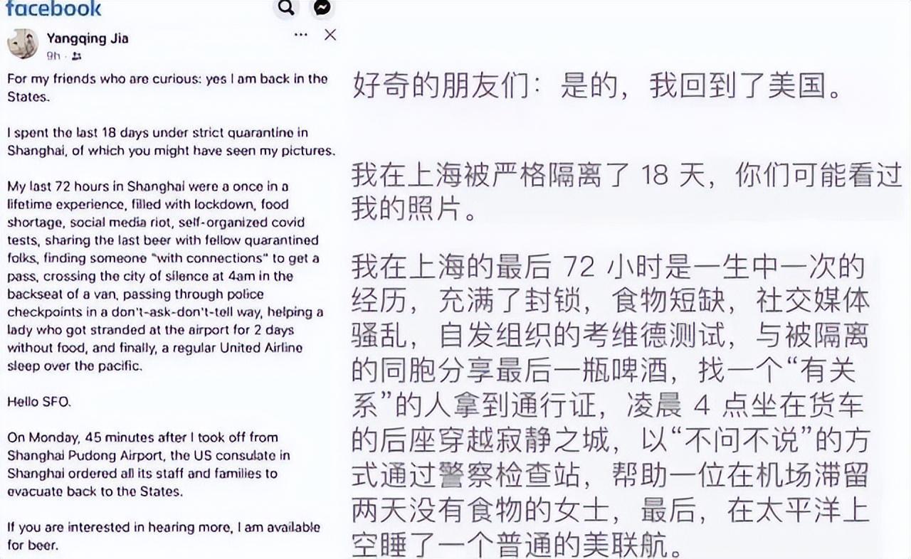 值得一提的是,贾清扬还发文表示,其搭乘的飞机起飞45分钟后,美上海领事馆命令所有工作人员和家属撤回美国。从这里不难看出,贾清扬认为美国更安全。对此,我想说的是,美国的感染率、死亡率是我国的几十倍,真的比国内安全吗?安全不安全暂且不论,我从他的身上看到了什么是“崇洋媚外”、“奴性”!