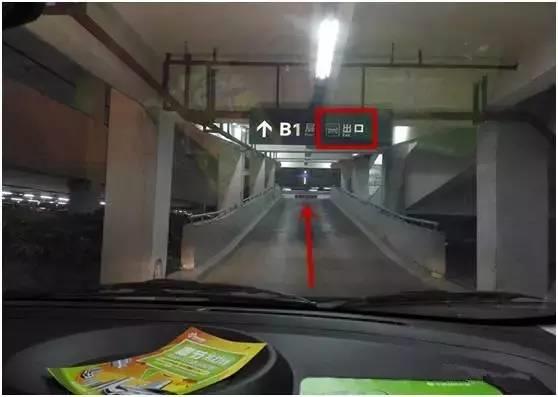 出地库时沿“出口”标示行驶即可↓
