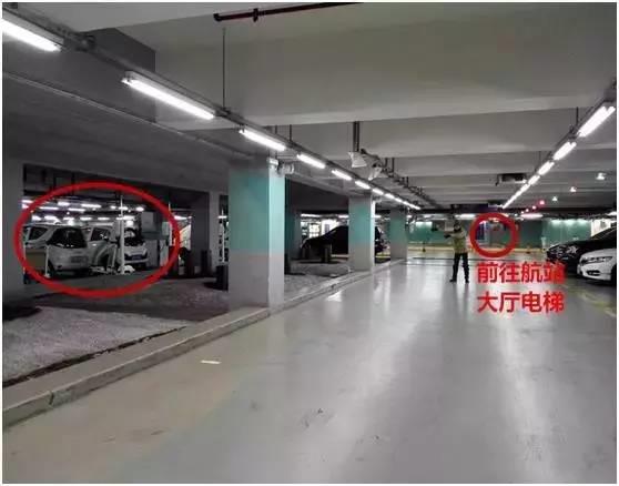 小e车位右前方为前往航站楼的电梯↓