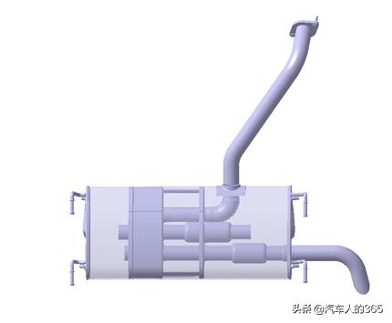消声器总成由前消声器、后消声器组成,消声器一般要求有大的消声量和消声频率范围,小的排气阻力(即排气背压)和良好的耐久性。
