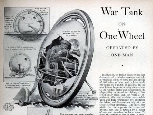 其实这种独轮坦克的概念早在第一次世界大战之前就已经有了,可见人们的想象力之丰富。只不过由于当时技术条件的限制,并没有生产出哪怕一辆样车。