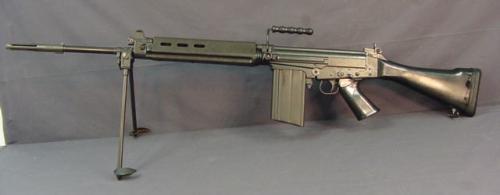FN FAL步枪是比利时赫斯塔尔公司研制的一种7.62毫米自动步枪,FAL即是法文“轻型自动步枪”的缩写。它比同一时代、同一口径的美国M14步枪要幸运得多,先后被世界上90多个国家所采用,许多国家还获得特许生产,是二战后产量最大、装备国家最多、分布最广的军用步枪之一。价格便宜、牢固可靠、精度上佳的FN FAL自动步枪既可作为突击步枪使用,也可作为中程的狙击步枪使用,并且也没有类似M14步枪连发不易控制的缺陷,所以很受国际雇佣兵的喜爱。尤其在动乱的非洲,只要有雇佣兵出没的地方,就有FAL的身影。难怪一家美国的著名雇佣兵杂志也把FN FAL列入“20世纪最伟大的雇佣兵之一”。FN FAL有许多变型枪,历经实战。英国也采用了FN FAL作为制式装备,其改良版称为L1A1,英国特别空勤团从马来西亚的丛林到约旦的山区、也门的荒漠都是使用FAL或L1A1作为主要武器,1982年马岛战争时,对阵的英国和阿根廷士兵使用的竟都是FN FAL步枪。