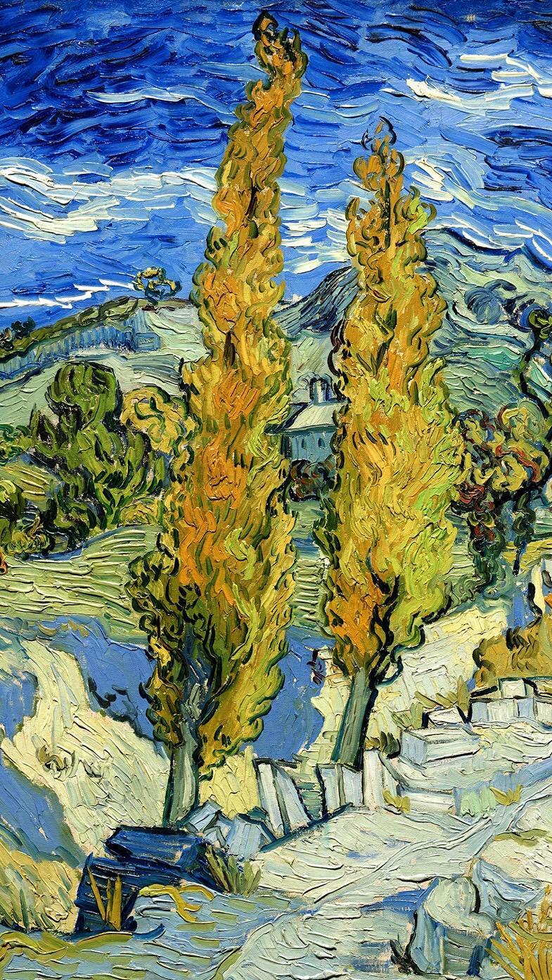 梵高作品;《圣雷米的白杨树》,创作于1889年