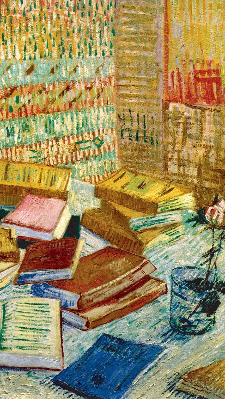 梵高作品:《法国小说和杯中玫瑰》,创作于1888年