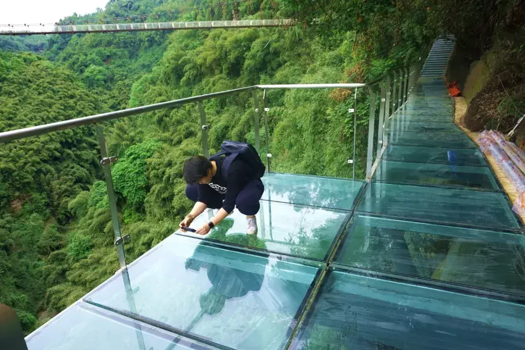 邛崃川西竹海:高空玻璃栈道的开放,吸引到了无数爱耍的游人