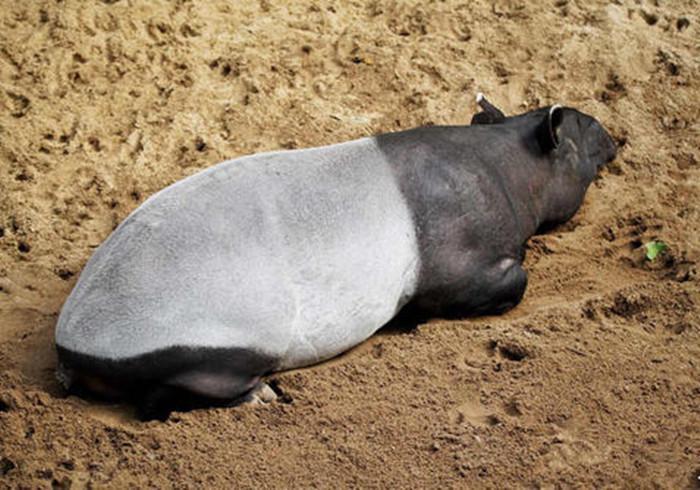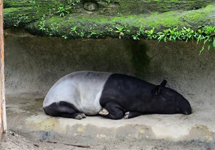 马来貘又被称之为"五不像",因为它们的鼻子似象、耳似马、后腿似犀牛、足似虎、躯似熊,就完全是五种动物拼接而成的一个生物,但是它们的样子却一点也不难看,反倒还有点可爱呢!
