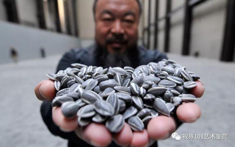 艾未未与他在伦敦TATE美术馆的装置艺术作品《一亿可陶瓷葵花籽》(Sunflower Seeds)。