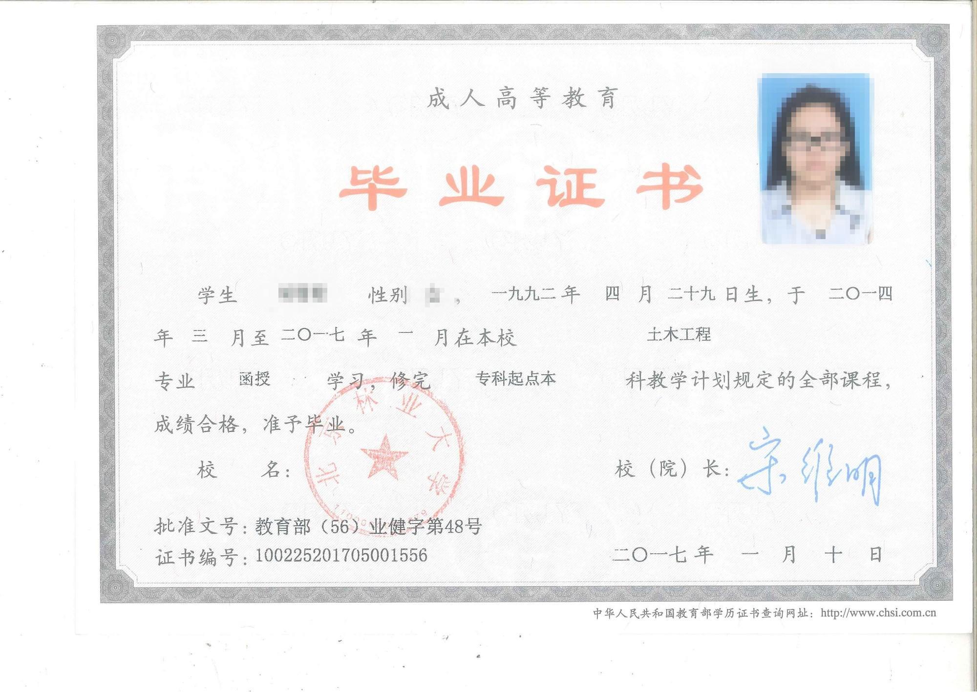 自考专升本毕业证书
