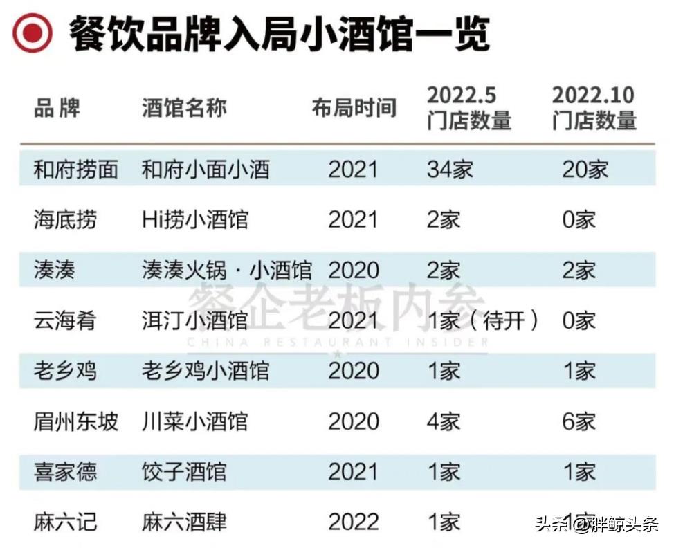 靠“餐+酒+演艺”红极一时的胡桃里、贰麻酒馆如今已成为时代的眼泪;2021年登陆港交所的海伦司曾是赛道里的现象级品牌,面临2022年近亿元的亏损,如今潜入下沉市场求新求变。不止如此,和府捞面、云海肴、海底捞、老乡鸡等餐饮品牌也在去年跟风涌入赛道,以小酒馆模式寻求增量,最终几乎都惨淡收场。