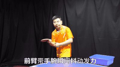 再来练习一下在发球的时候稍微地加入一点手腕的摩擦,但注意这个手腕的摩擦,也不要手腕自己动幅度太大,拍面不要改变过多,还是用前臂的发力去带动手腕抖动,拍子稍微握松一点,有一个瞬间的抖动就可以出来旋转。
