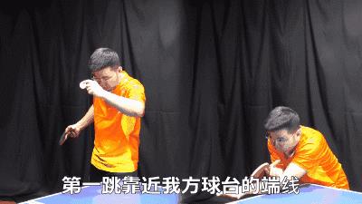 正手高抛发球要把球发长这个触球点就要有变化,触球点稍微的还要再低一点,然后发力的用力方向稍微的向前加点力,让我们第一跳比较靠近我方球台的端线,这样可以把球发得更长。