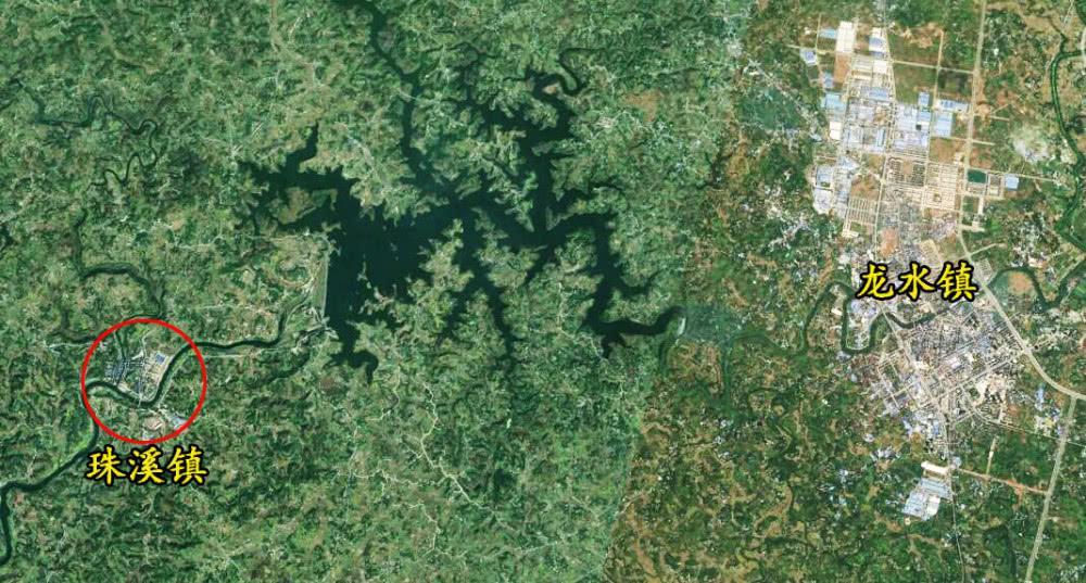 和龙水镇相邻的珠溪镇是一个小镇,场镇建成区面积不足1平方公里,和龙水镇一相比,就看得出这差距是十分大的:龙水是一个小城市,而珠溪镇却是一个乡村集市。