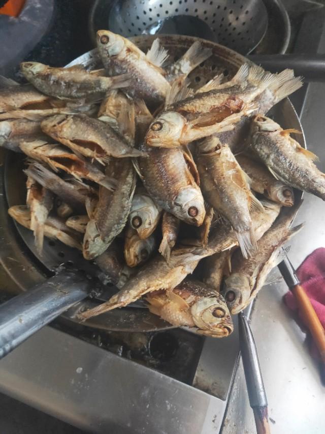 第一步:小鲫鱼洗干净自然风干(春秋天一般2天的时间,冬天3天。夏天不建议自然风干)