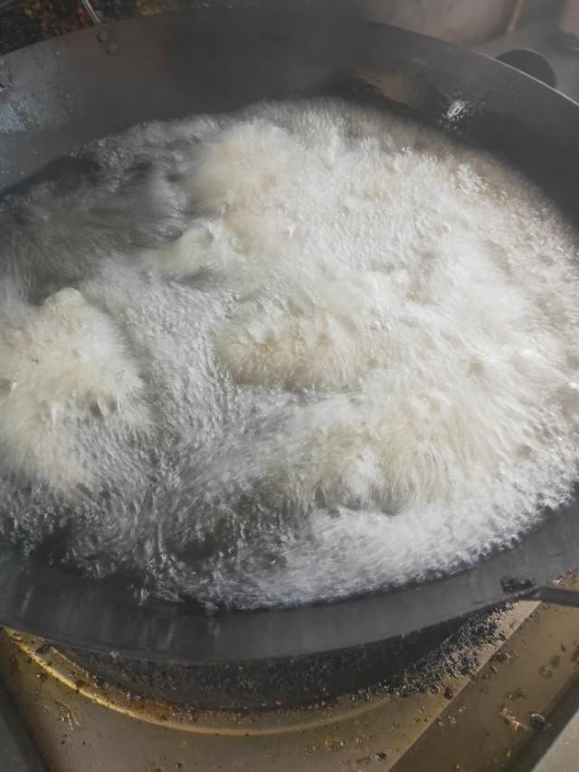第三步:上锅倒油烧火,油温要高点。(锅边有些青烟就好了)鱼下锅炸到金黄色捞出,控油。