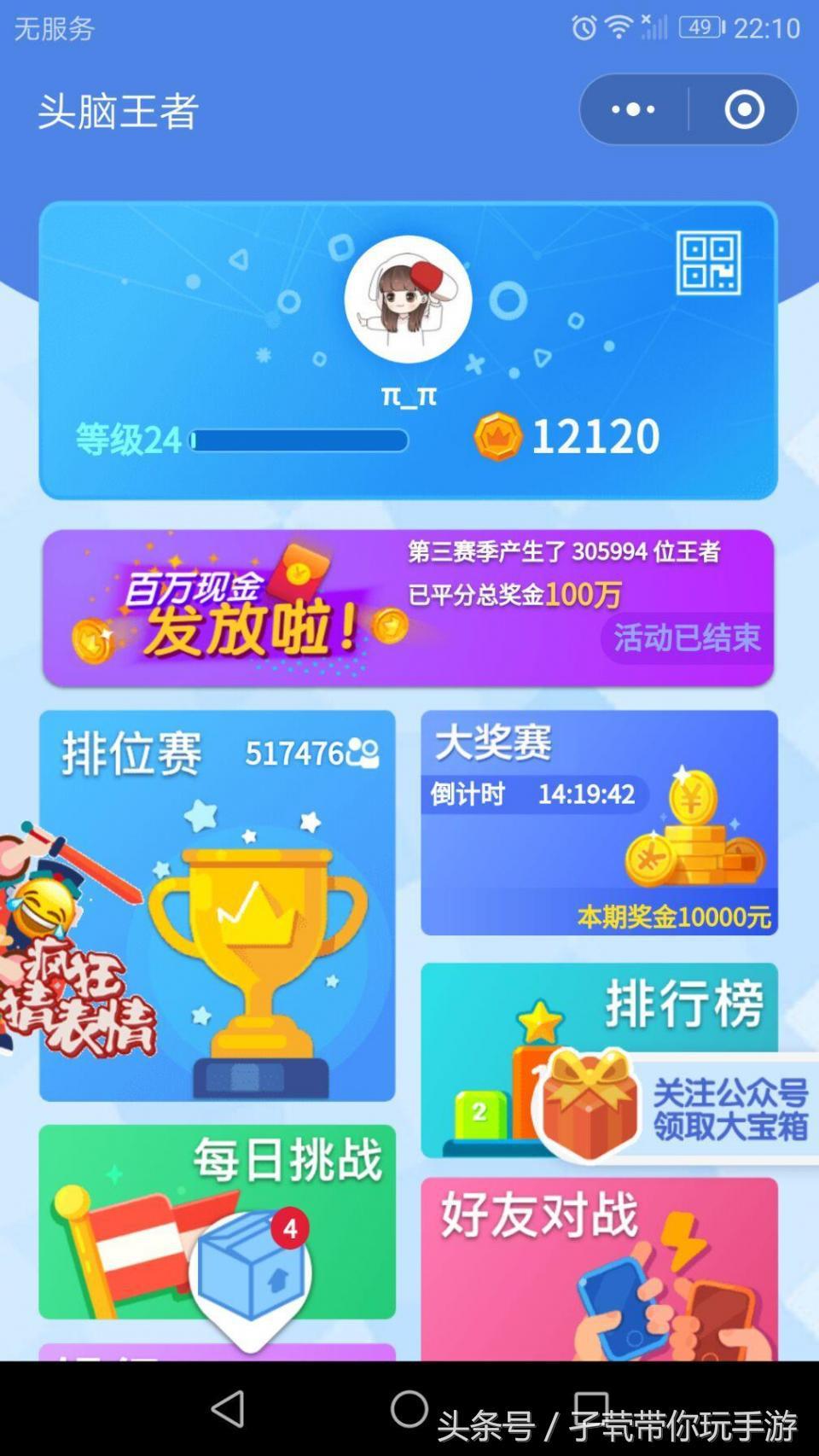 二、头脑王者,这款游戏主要是好友间斗智斗勇的,考验大家知识面的一款游戏,每次赢了游戏都有种自己是学霸的错觉。