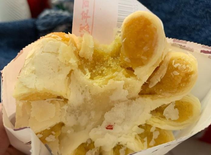 经过烘烤,酥皮膨起,馅料满满当当。一口下去,酥脆的表皮在嘴里爆开,甜而不腻,绵密的奶黄和面皮,真的是味觉的狂欢。