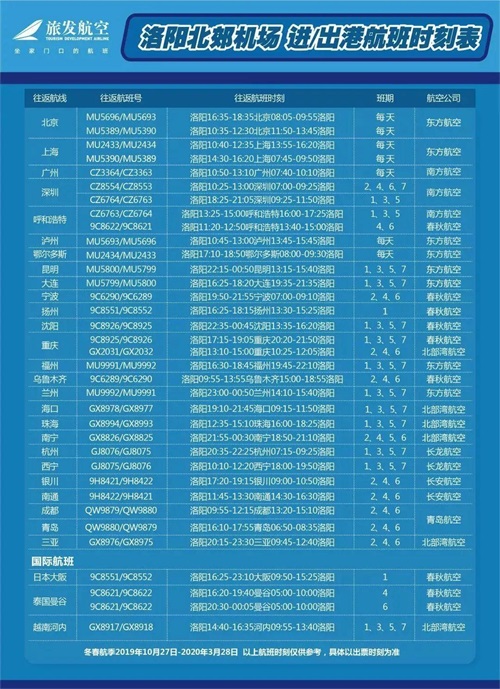 洛阳北郊机场冬春航季新增多条航线!还有最新航班时刻表,快收藏!
