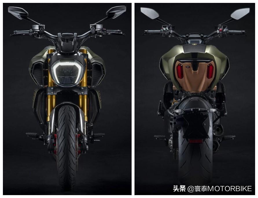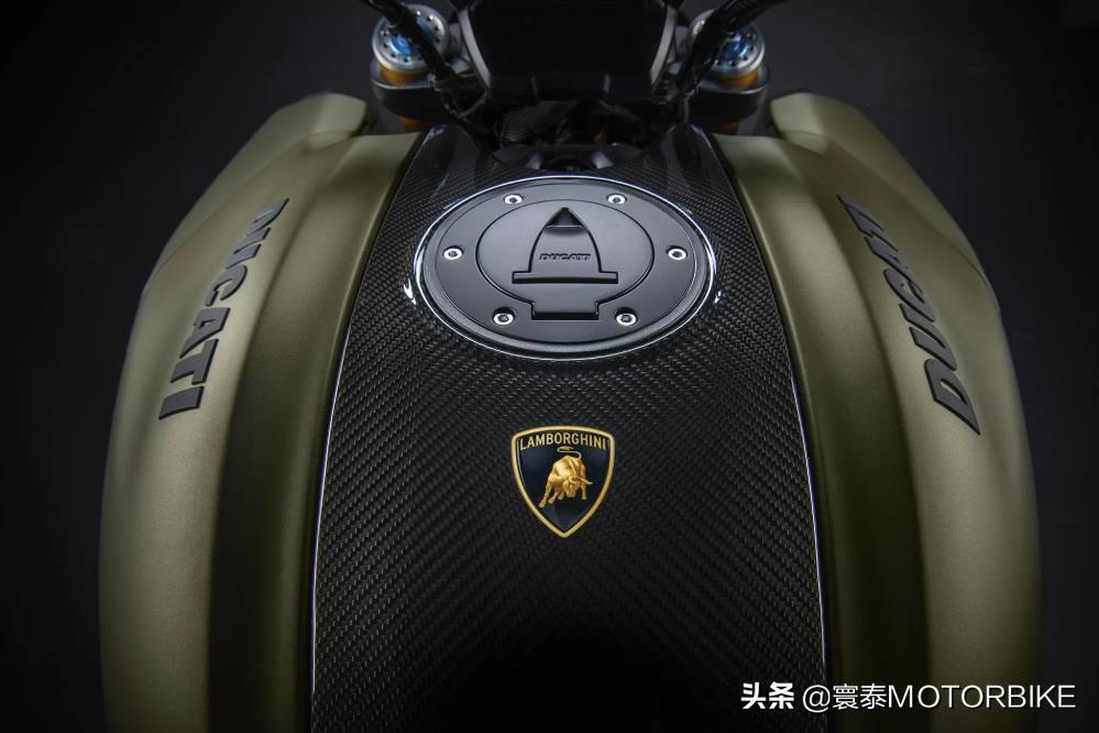 Ducati Diavel 1260 Lamborghini的车身配色效仿了(兰博基尼)Lamborghini SiànFKP 37顶级超跑的“Gea Green/Electrum Gold(电金绿)”涂装;甚至某些部件,如定制的星型镀金锻造轮毂造型也趋于一致。