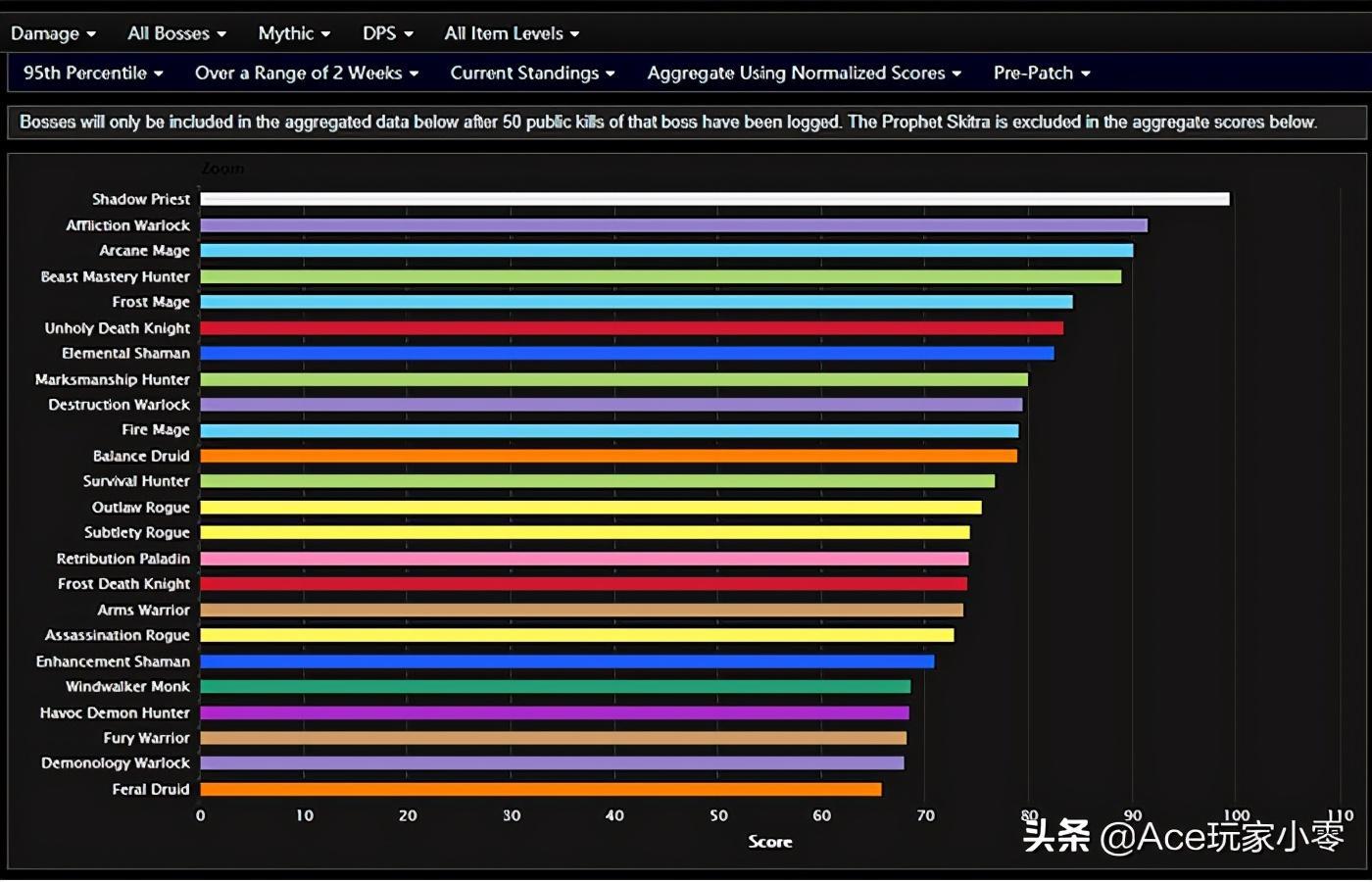 “9.0前夕”的DPS排行榜和“争霸艾泽拉斯”相比,变化非常大。