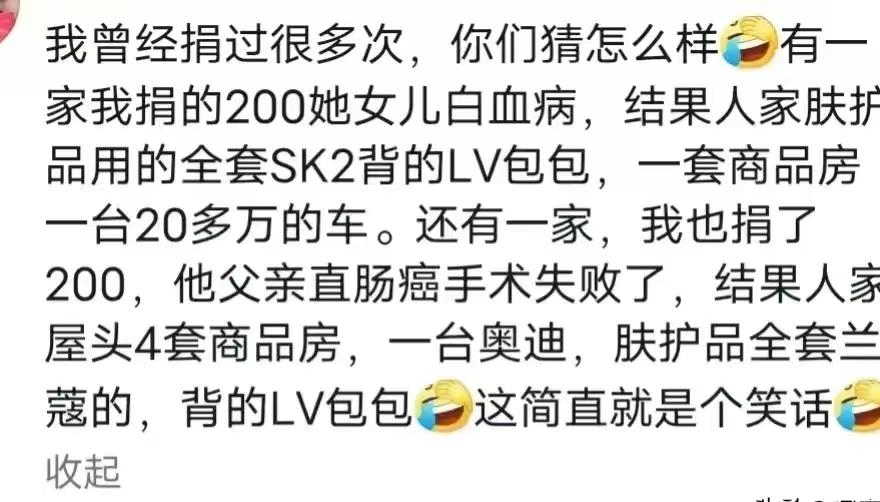 网友们表示,这并不是个案,自己过得很拮据,但却不能容忍别人的困境。自己每个月只有3000元工资,却为别人众筹买玛莎拉蒂。