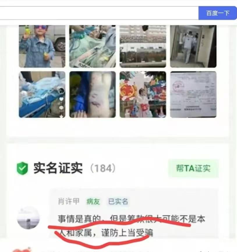 还有住在同一个病房的病友说了一句实话!事情是真的,但筹款似乎不是本人,也就是说顺水推舟。