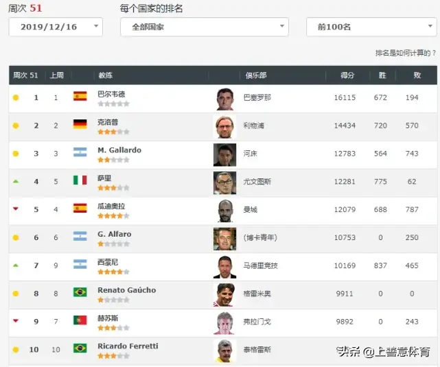 最新足球教练排名,巴尔韦德第一,萨里第四,渣叔、瓜叔笑尔不语