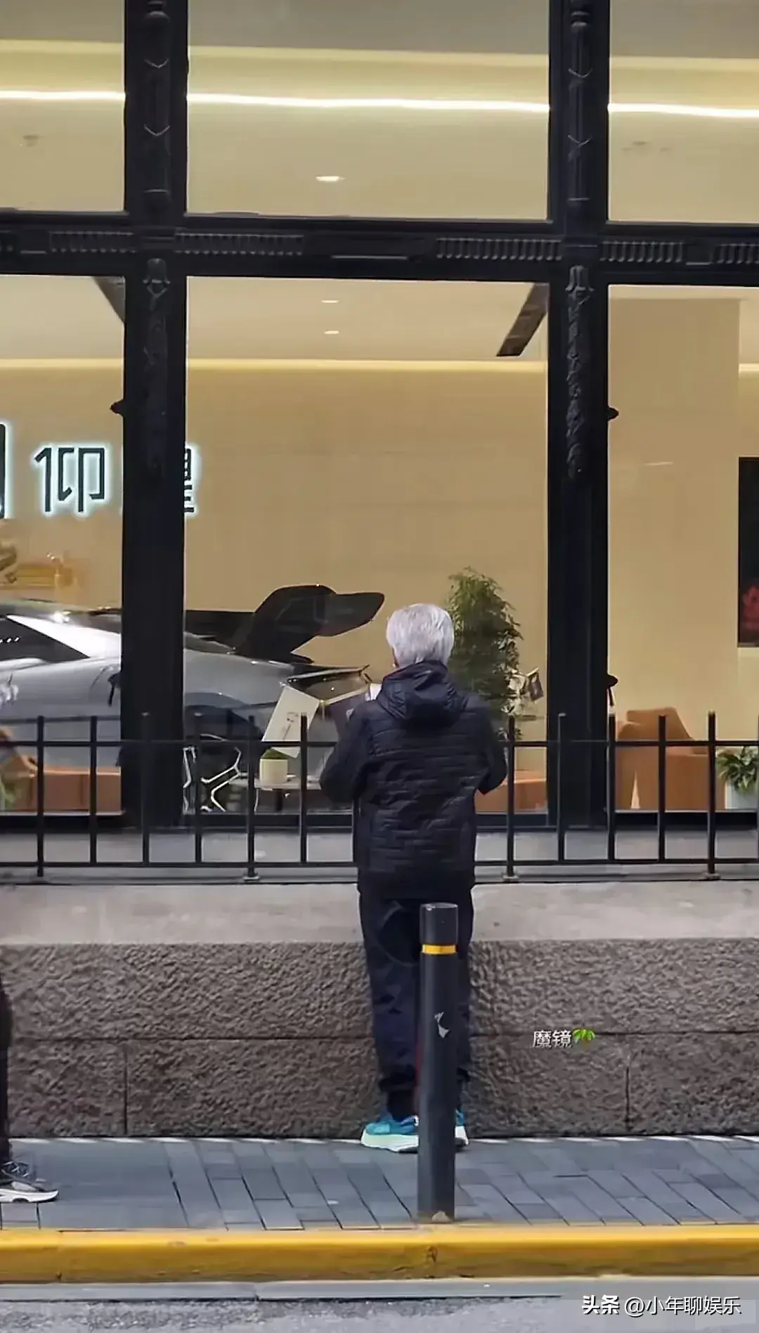 他站在窗户外面,特别陶醉的观摩了起来,还拿出了手机,不断调整自己的站位,从不同的角度拍摄这款比亚迪仰望。
