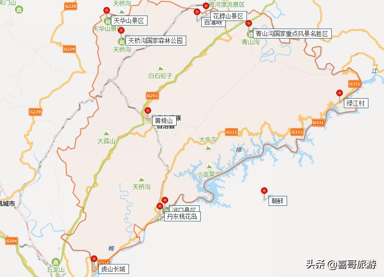 2、宽甸自治县十大景点自驾游行程路线:宽甸自治县-黄椅山-河口景区-丹东桃花岛-虎山长城-天华山景区-天桥沟国家森林公园-百瀑峡-花脖山景区-青山沟国家重点风景名胜区-绿江村-宽甸自治县。