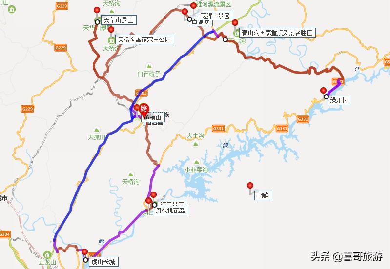 青山沟国家重点风景名胜区自驾至绿江村交通路线:青山沟国家重点风景名胜区-青滴线-小坦线-331国道-绿江村。全长88.1公里,车程2小时4分钟;