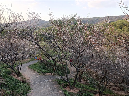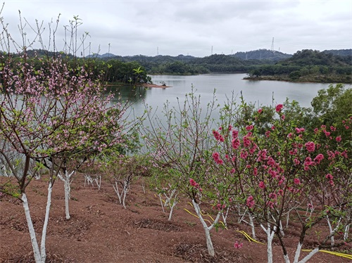现在去红花湖,我很少骑行全程绿道,大多骑到大坝,停车下来,往下一个驿站走一个来回,听自己的脚步声或想点什么。多数时候,就静坐于桃梅园,按说什么时日都好。要说最好,当然是一个晴日。或躺着晒太阳,看夕阳在桃枝叶间慢慢变红,又一点点淡去,逝没。湖山在阳光的有无下,呈现出不同的色彩不同的状态,给人不同的感受,引人遐思。俩俩静坐对望,什么也不干,就挺好!